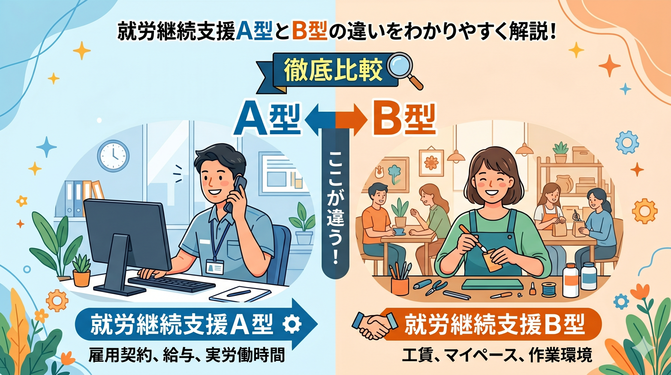 日本には、障害や病気、あるいは環境によって働くことに困難を抱える方を支える「就労継続支援」という公的なサービスがあります。名前は聞いたことがあっても、A型とB型の具体的な違いや、どちらがお子さんに合っているのかを判断するのは難しいかもしれません。